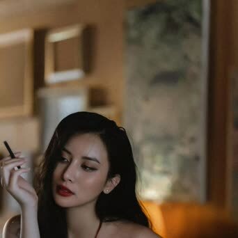她身着红色吊带裙修饰着身材,优雅的曲线充满着妩媚的风情,令人魂牵梦绕